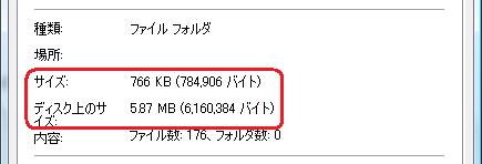 圧縮やアーカイブ化で一つのファイルにまとめると、上記の例ではサイズが10KB程度以下、ディスク上のサイズが32KB程度以下になります。